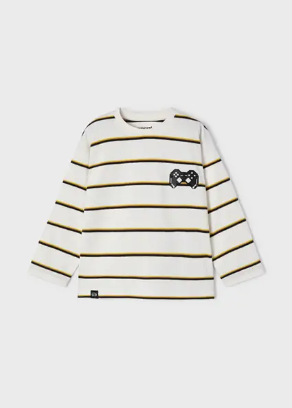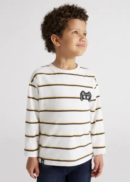 Mayoral Λευκή Ριγέ Μακρυμάνικη Μπλούζα για Αγόρι 12-04017-063