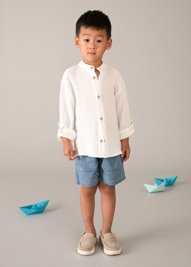 Mayoral Λευκό Μακρυμάνικο Πουκάμισο με Γιακά Μάο για Αγόρι 26-03120-033