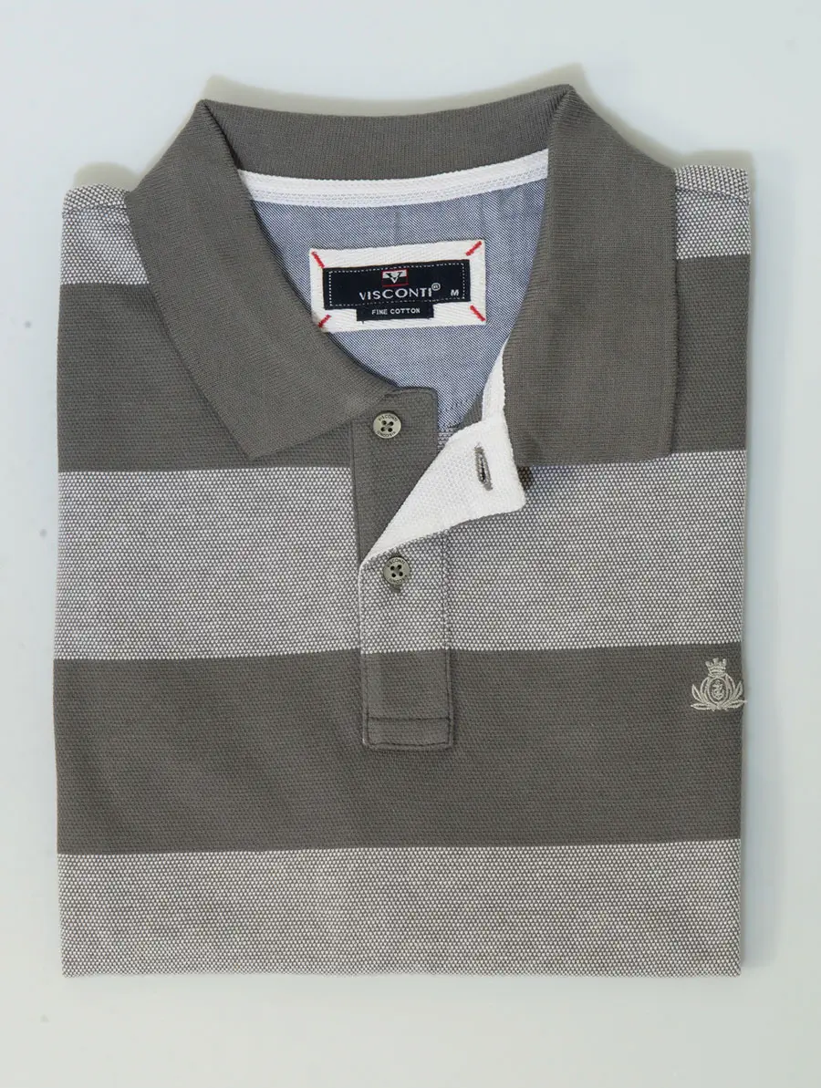 Visconti Ανδρική Γκρι Ριγέ Κοντομάνικη Μπλούζα Πόλο 2645-6-Stripe