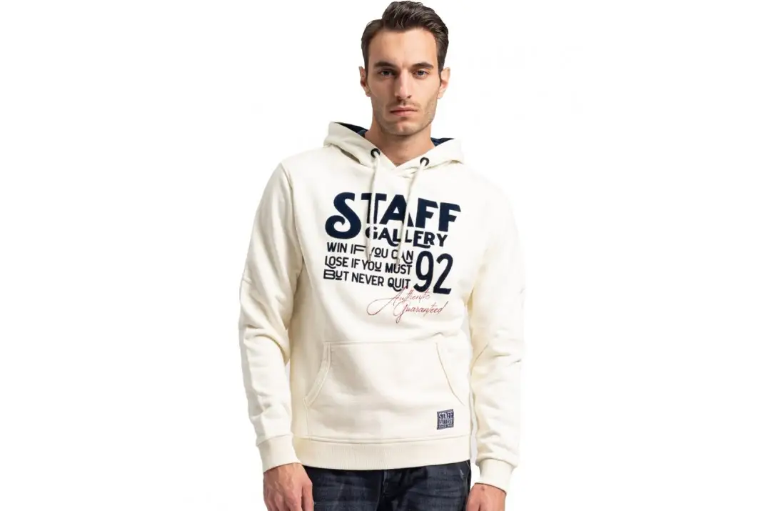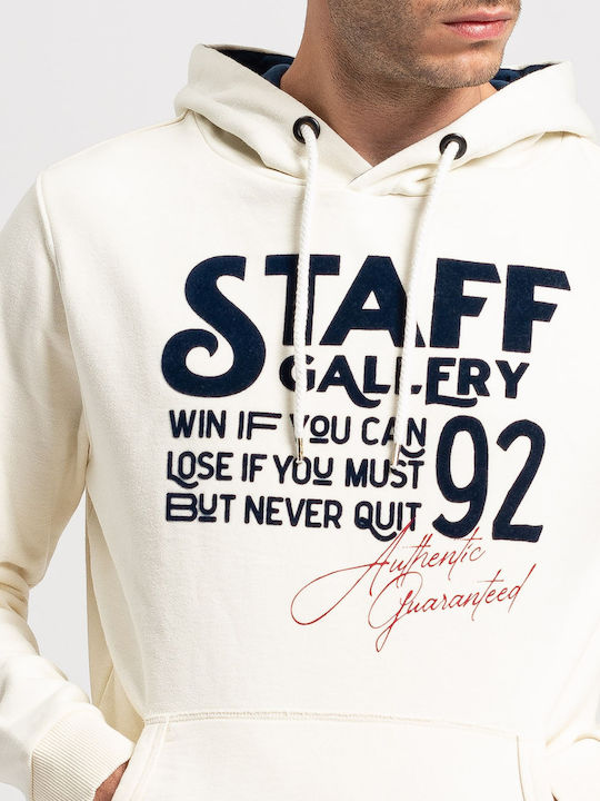 Staff Dominic Ανδρική Εκρού Μπλούζα Φούτερ με Κουκούλα 64-106.046-N0024