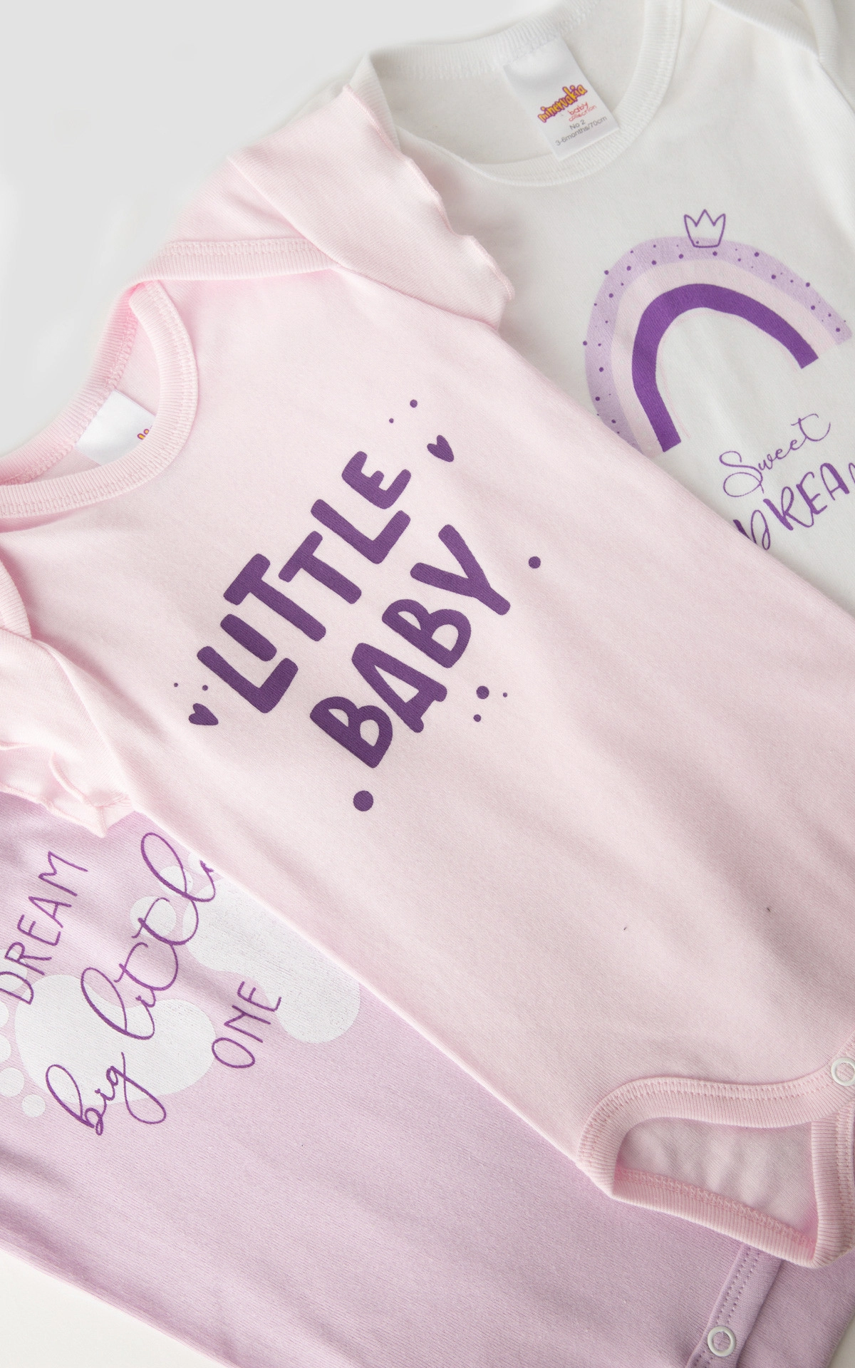 Minerva Σετ 3 Κοντομάνικα Φορμάκια Λευκό, Λιλά και Ροζ για Κορίτσι 90-32114-353